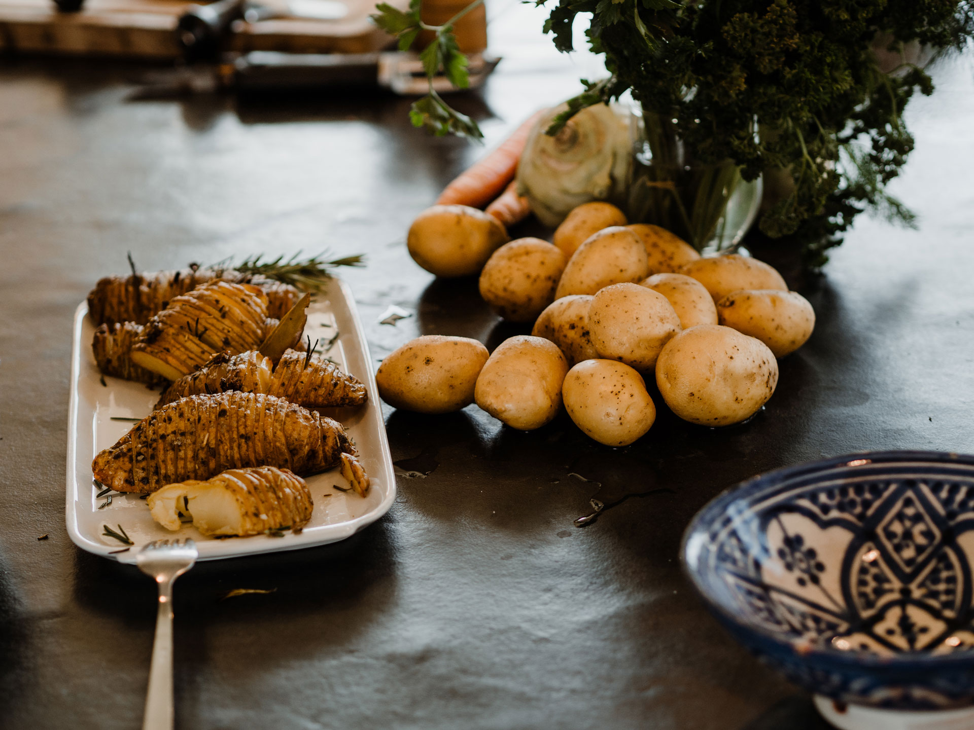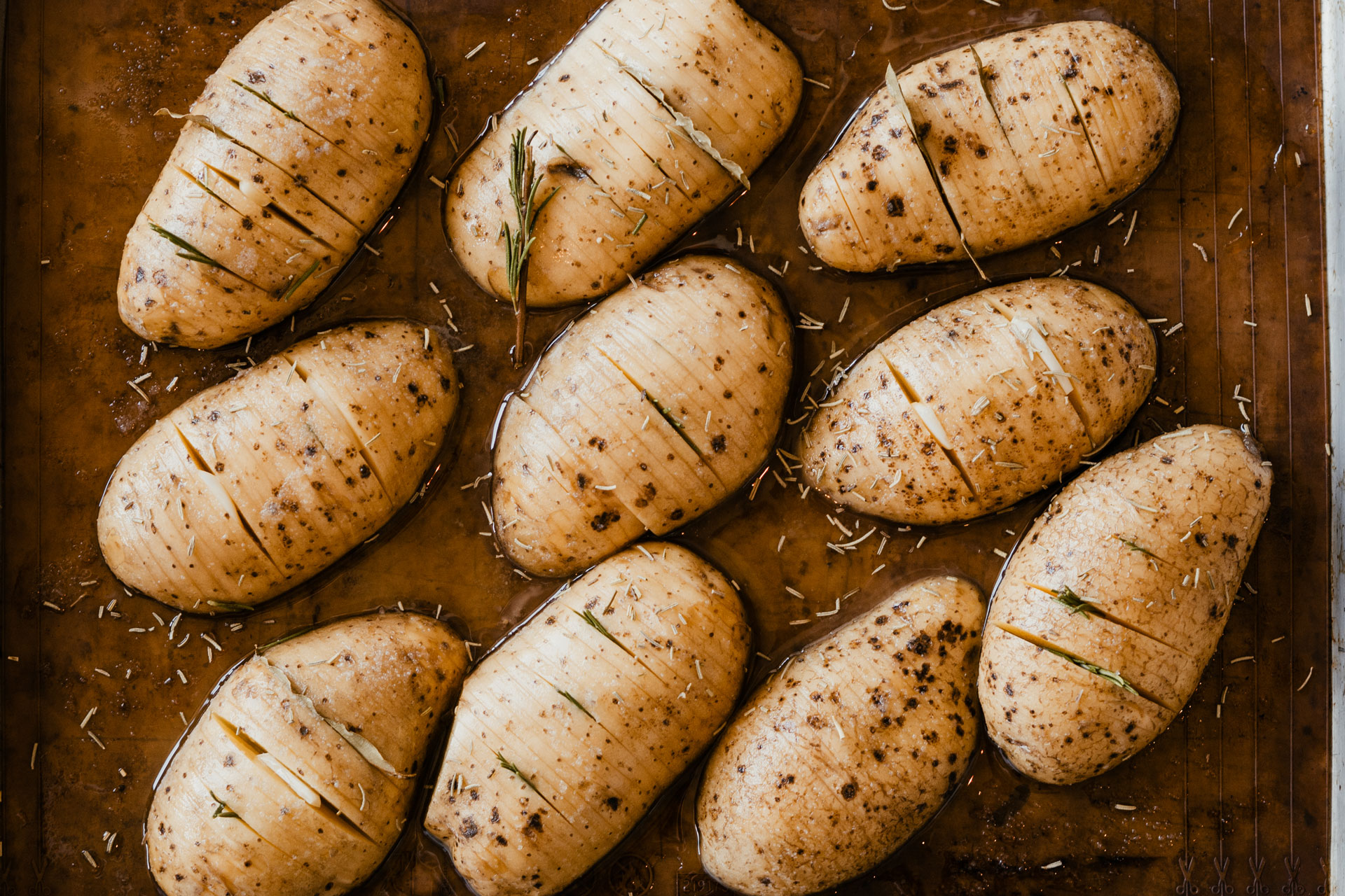 1. Die Borger Riesen waschen, ungeschält halbieren, auf die Schnittfläche legen und einschneiden (nicht durchschneiden).