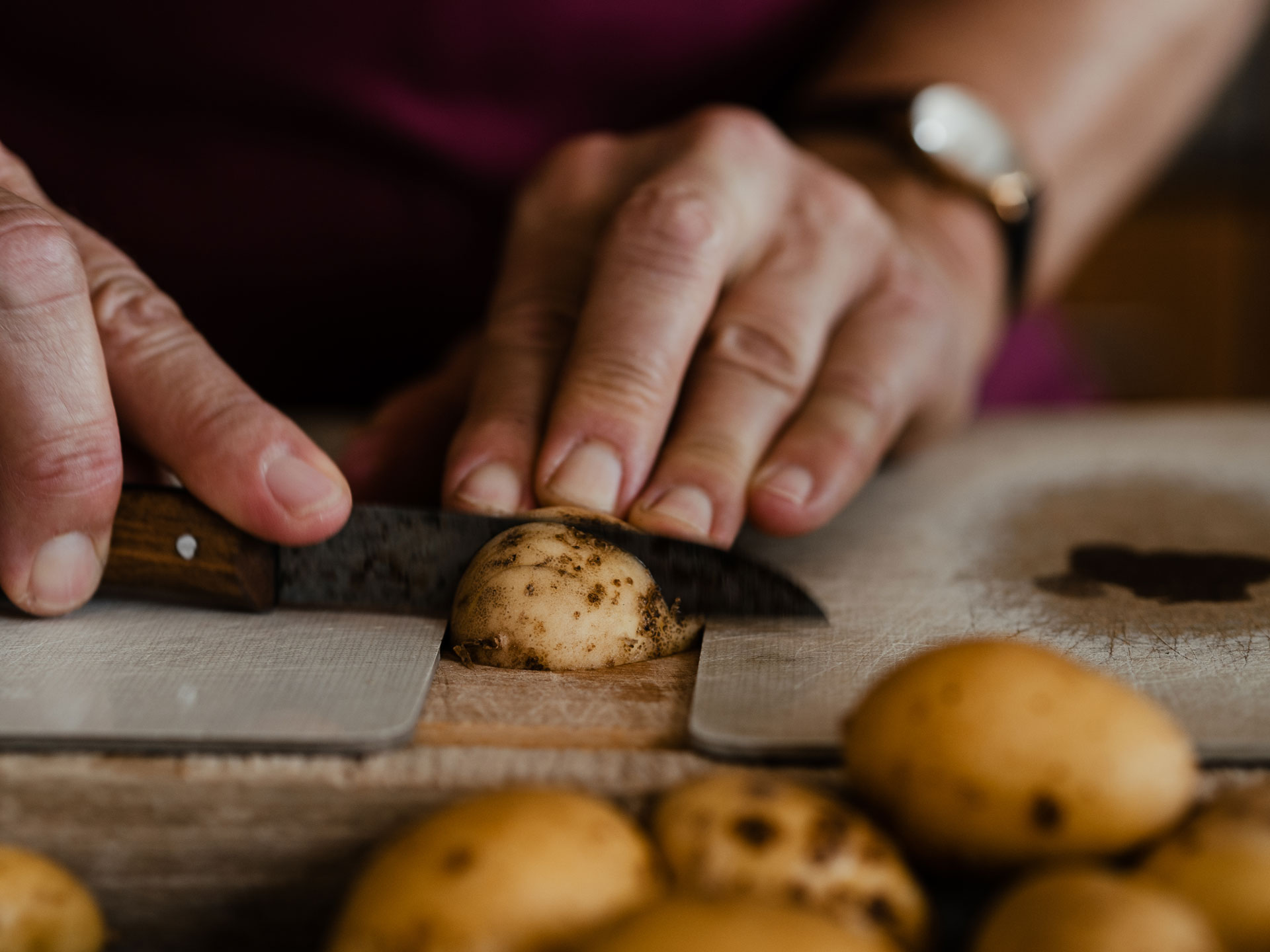 1. Die Borger Riesen waschen, ungeschält halbieren, auf die Schnittfläche legen und einschneiden (nicht durchschneiden).